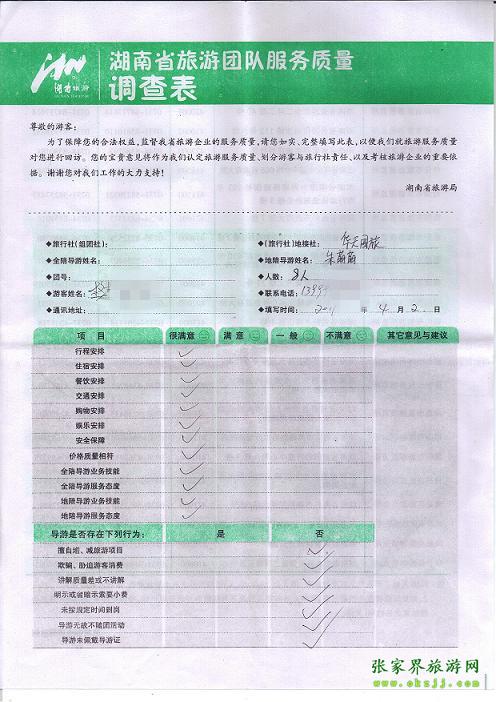 2011年4月2日樊先生一行8人旅游質量反饋