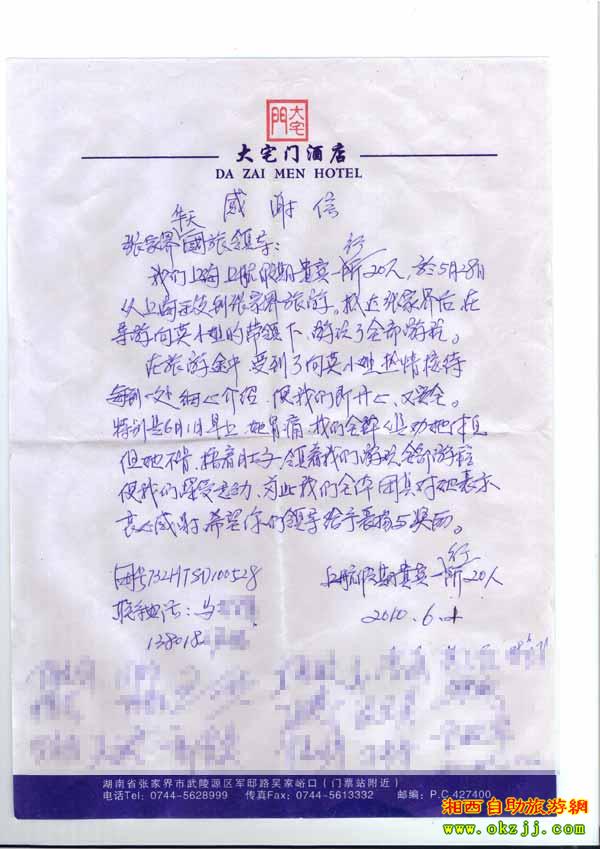 2010年6月1上海馬先生一行20人旅游表楊信
