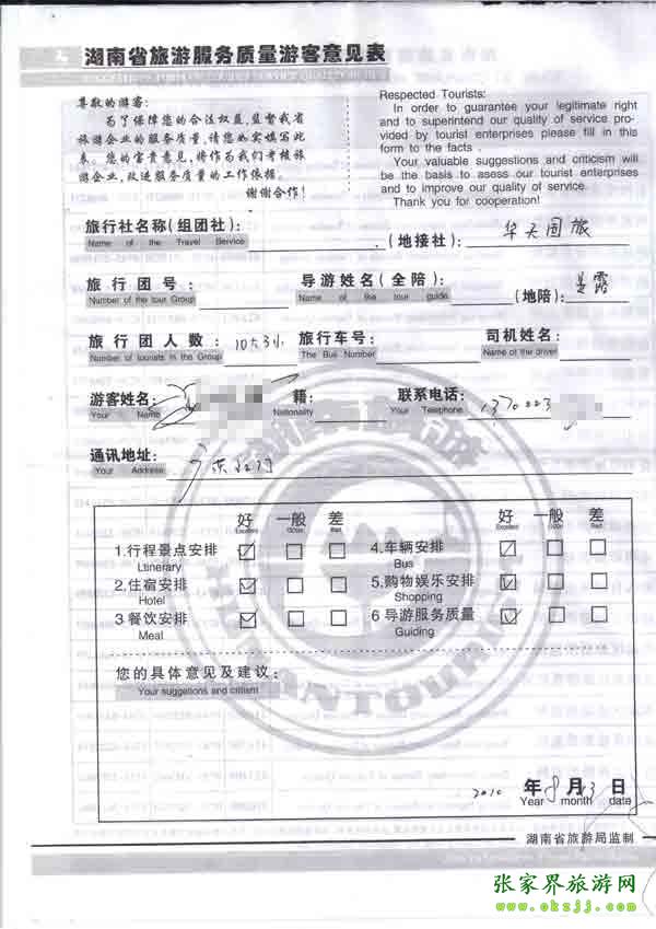 2010年8月13日黑廣東高先生一行13位旅游質量反饋