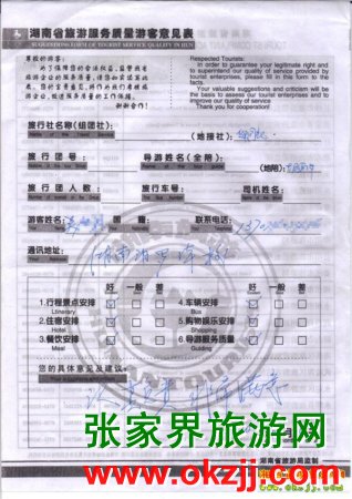2010年3月14號吳先生一行張家界旅游質量反饋