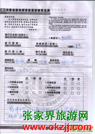 2010年3月30日北京杜先生一行11人張家界旅游質量反饋
