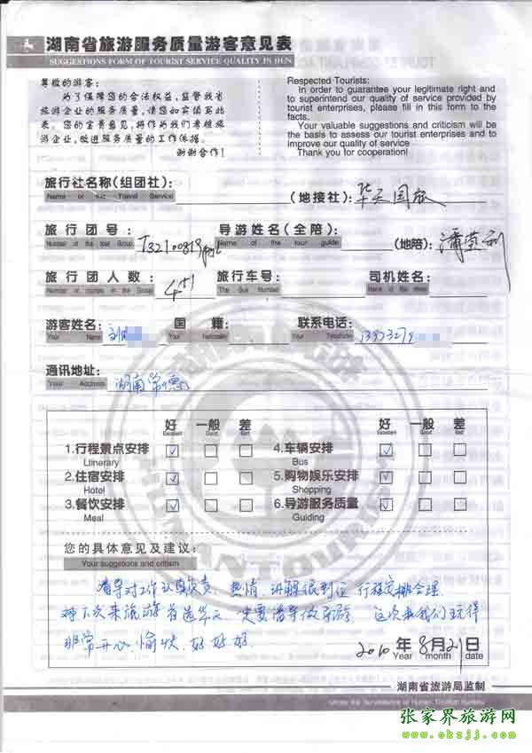 2010年8月21日常德劉小姐一行5位旅游質(zhì)量反饋:這次我們玩得很開(kāi)心