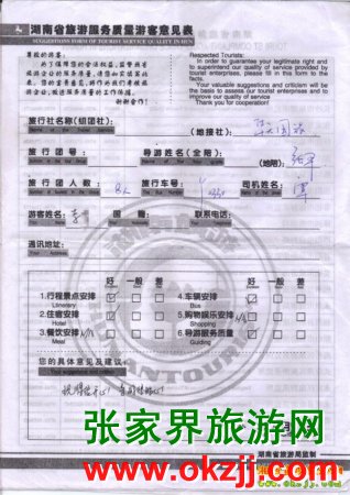 2010年4月4日李小姐一行8人張家界旅游質量反饋