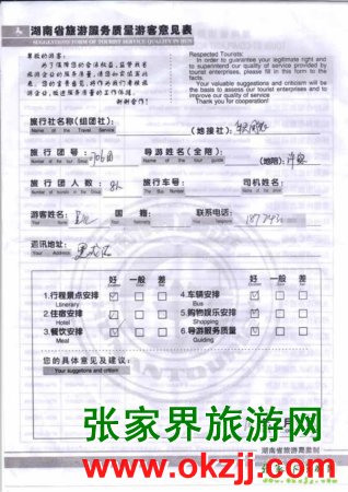 2010年7月5日黑龍江吳先生一行5位旅游質量反饋