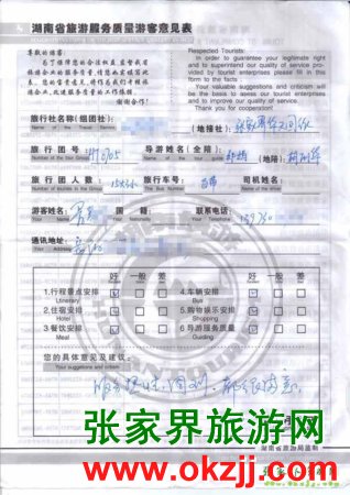 2010年7月7日岳陽暑先生一行18位旅游質量反饋