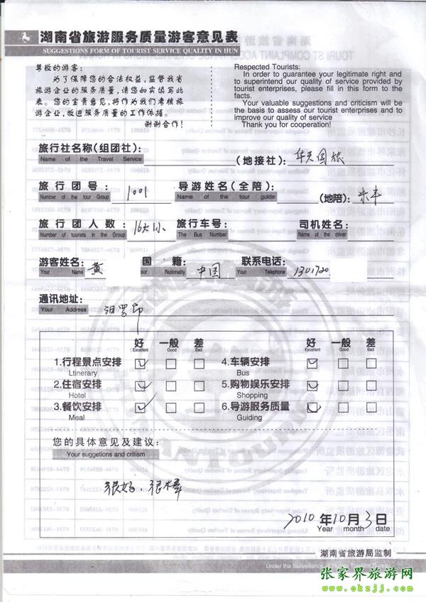 2010年10月1日團對導游米豐評價:很好,很棒!