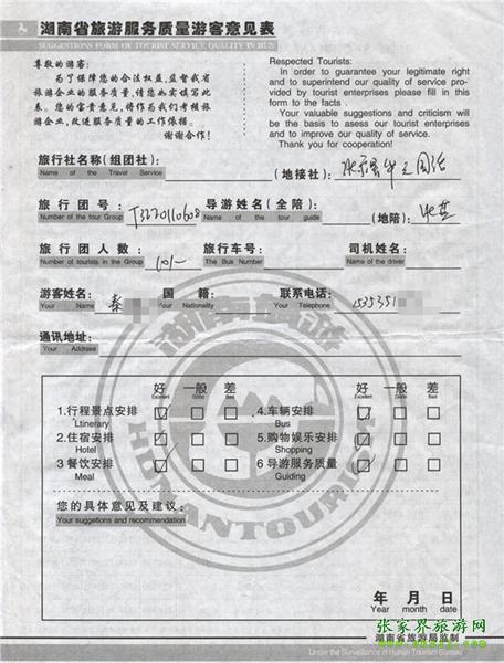 2011年6月11日秦小姐一行10人旅游質量反饋