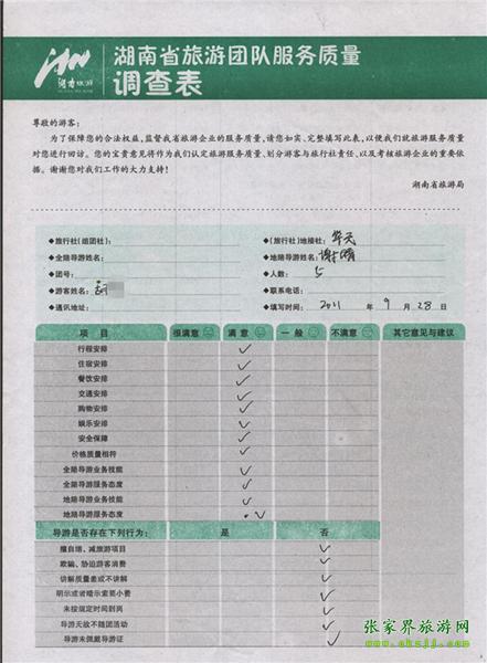 2011年9月28日胡小姐一行5人旅游質量反饋