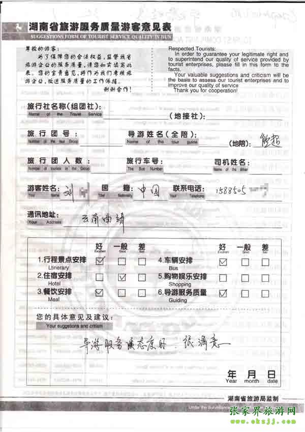 - 游客夏先生為表揚(yáng)導(dǎo)游李姣姣寫來表揚(yáng)信致我張家界... [14811]
