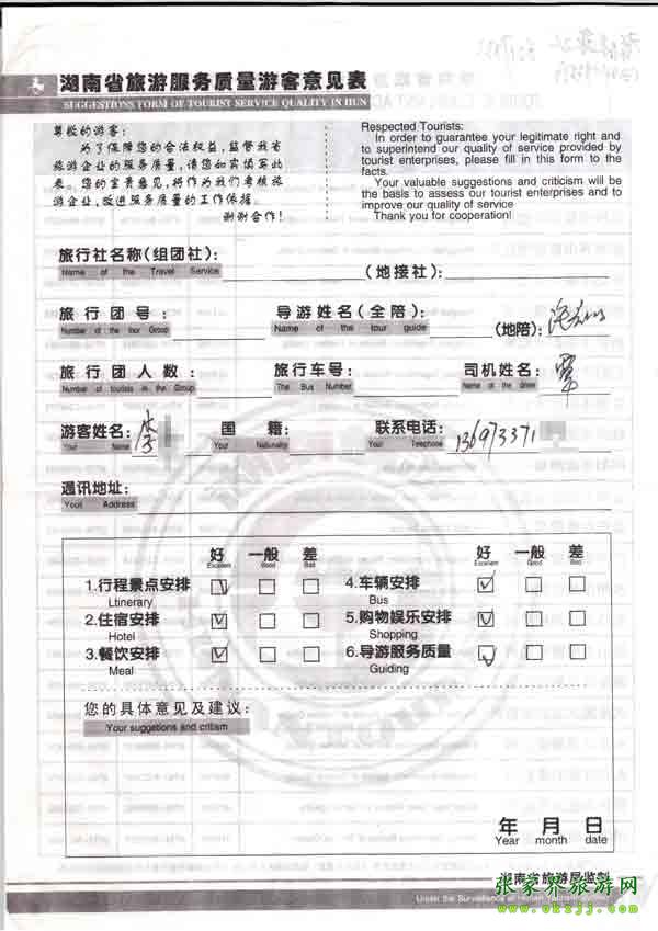 2010年10月4日李先生旅游質量反饋