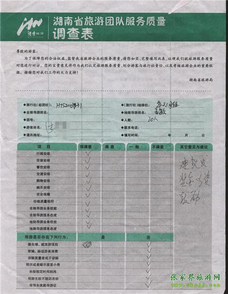 2011年7月31日過先生一行20人旅游質量反饋:建議發獎金以資鼓勵