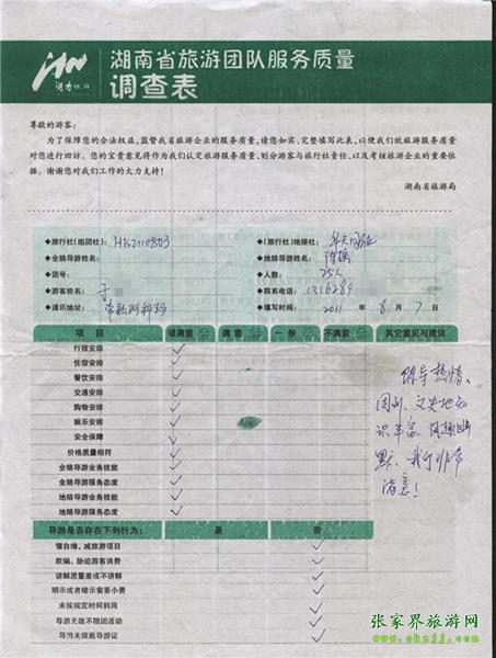 2011年8月7日于小姐一行25人旅游質量反饋:我們非常滿意!