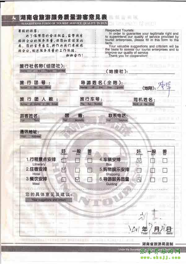 2010年7月22日劉先生旅游質量反饋