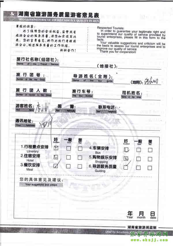 2010年10月10日李先生旅游質量反饋