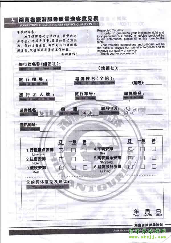 2010年10月23日陳小姐旅游質量反饋