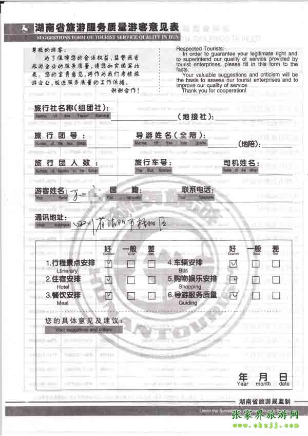 2010年7月23日四川萬先生旅游質量反饋