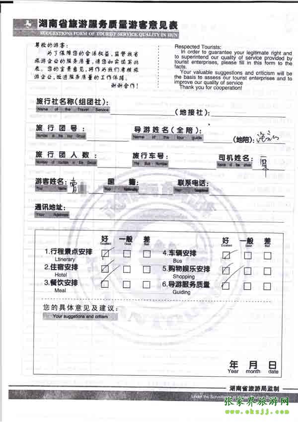 2010年10月26日曹小姐旅游質量反饋