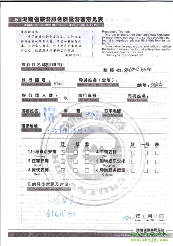 2010年11月11日顧先生旅游質量反饋