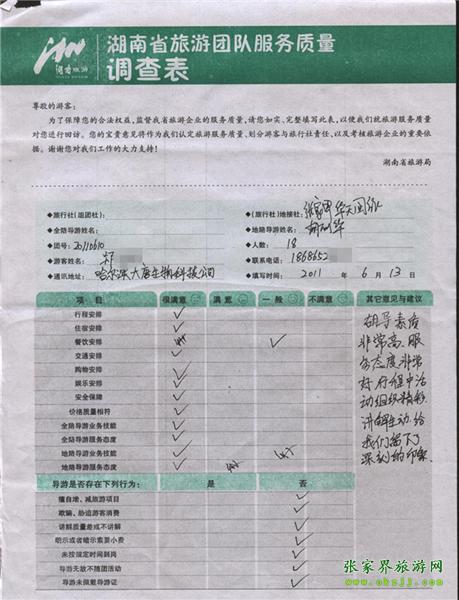 2011年6月13日鄭先生一行18人旅游質量反饋:導游服務態度好,行程活動組織精彩