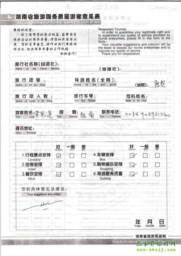 2010年8月22日越南黃先生旅游質(zhì)量反饋