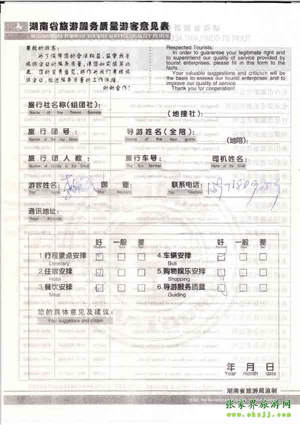 2010年8月23日李先生旅游質量反饋